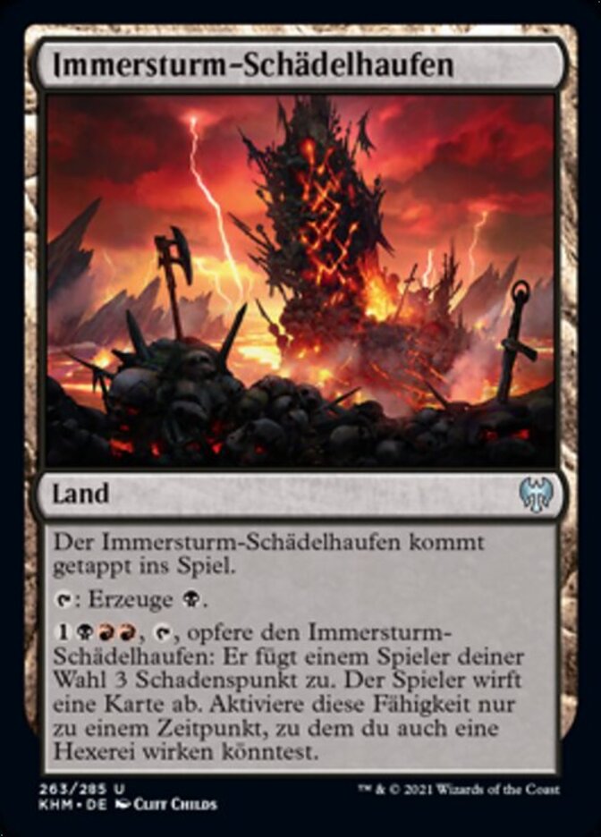 | Rules | Immersturm Skullcairn enters the battlefield tapped. : Add . , , Sacrifice Immersturm Skullcairn: It deals 3 damage to target player. That player discards a card. Activate only as a sorcery. |