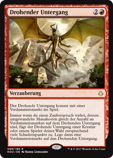 | Rules | Imminent Doom enters the battlefield with a doom counter on it. Whenever you cast a spell with mana value equal to the number of doom counters on Imminent Doom, Imminent Doom deals that much damage to any target. Then put a doom counter on Imminent Doom. |