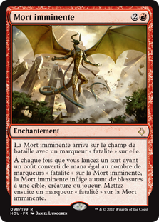 | Rules | Imminent Doom enters the battlefield with a doom counter on it. Whenever you cast a spell with mana value equal to the number of doom counters on Imminent Doom, Imminent Doom deals that much damage to any target. Then put a doom counter on Imminent Doom. |