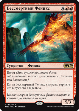 | Rules | Flying (This creature can't be blocked except by creatures with flying or reach.) When Immortal Phoenix dies, return it to its owner's hand. |