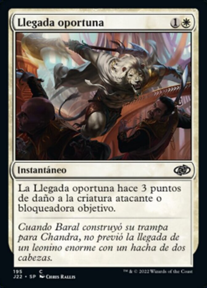 | Rules | Impeccable Timing deals 3 damage to target attacking or blocking creature. |