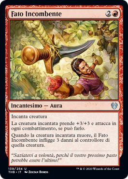 | Rules | Enchant creature Enchanted creature gets +3/+3 and attacks each combat if able. When enchanted creature dies, Impending Doom deals 3 damage to that creature's controller. |