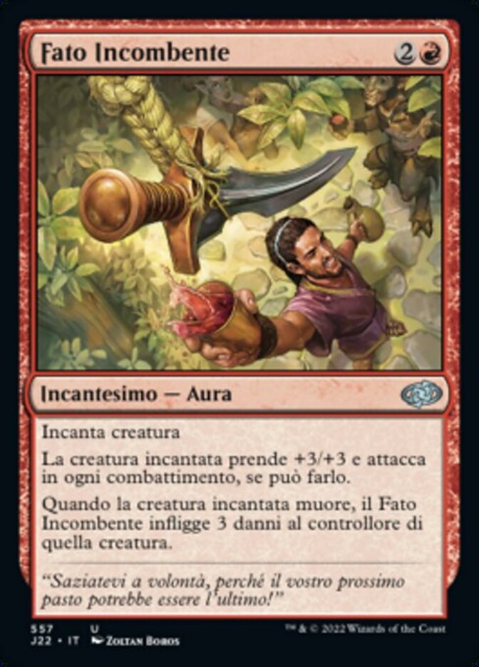 | Rules | Enchant creature Enchanted creature gets +3/+3 and attacks each combat if able. When enchanted creature dies, Impending Doom deals 3 damage to that creature's controller. |