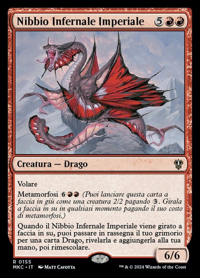 | Rules | Flying Morph (You may cast this card face down as a 2/2 creature for . Turn it face up any time for its morph cost.) When Imperial Hellkite is turned face up, you may search your library for a Dragon card, reveal it, put it into your hand, then shuffle. |