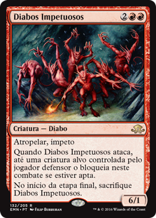 | Rules | Trample, haste When Impetuous Devils attacks, up to one target creature defending player controls blocks it this combat if able. At the beginning of the end step, sacrifice Impetuous Devils. |
