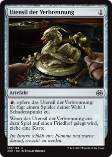 | Rules | , Sacrifice Implement of Combustion: It deals 1 damage to target player or planeswalker. When Implement of Combustion is put into a graveyard from the battlefield, draw a card. |