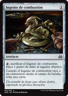 | Rules | , Sacrifice Implement of Combustion: It deals 1 damage to target player or planeswalker. When Implement of Combustion is put into a graveyard from the battlefield, draw a card. |