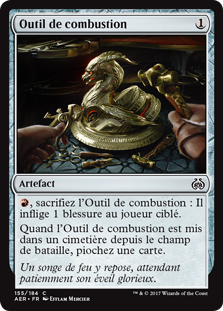 | Rules | , Sacrifice Implement of Combustion: It deals 1 damage to target player or planeswalker. When Implement of Combustion is put into a graveyard from the battlefield, draw a card. |