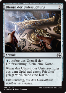 | Rules | , Sacrifice Implement of Examination: Draw a card. When Implement of Examination is put into a graveyard from the battlefield, draw a card. |