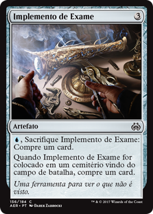 | Rules | , Sacrifice Implement of Examination: Draw a card. When Implement of Examination is put into a graveyard from the battlefield, draw a card. |