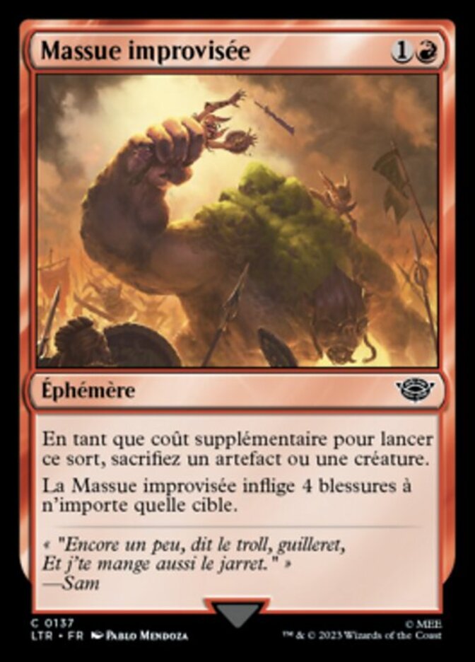 | Rules | As an additional cost to cast this spell, sacrifice an artifact or creature. Improvised Club deals 4 damage to any target. |