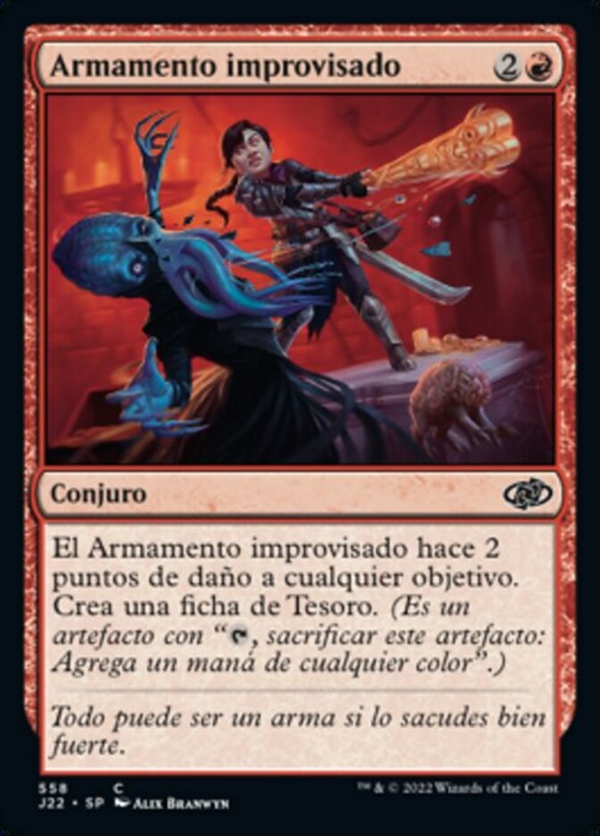 | Rules | Improvised Weaponry deals 2 damage to any target. Create a Treasure token. (It's an artifact with ", Sacrifice this artifact: Add one mana of any color.") |