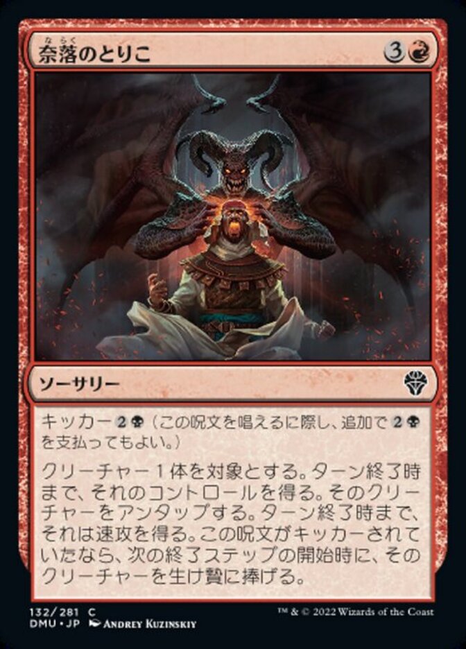 | Rules | Kicker (You may pay an additional as you cast this spell.) Gain control of target creature until end of turn. Untap that creature. It gains haste until end of turn. If this spell was kicked, sacrifice that creature at the beginning of the next end step. |