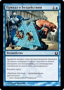 | Rules | Detain target creature an opponent controls. (Until your next turn, that creature can't attack or block and its activated abilities can't be activated.) Draw a card. |