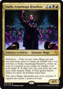 | Rules | Eminence — Whenever another nontoken Wizard enters the battlefield under your control, if Inalla, Archmage Ritualist is in the command zone or on the battlefield, you may pay . If you do, create a token that's a copy of that Wizard. The token gains haste. Exile it at the beginning of the next end step. Tap five untapped Wizards you control: Target player loses 7 life. |