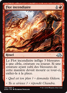 | Rules | Incendiary Flow deals 3 damage to any target. If a creature dealt damage this way would die this turn, exile it instead. |