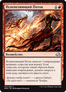 | Rules | Incendiary Flow deals 3 damage to any target. If a creature dealt damage this way would die this turn, exile it instead. |