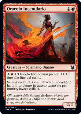 | Rules | : Incendiary Oracle gets +1/+0 until end of turn. If a creature dealt damage by Incendiary Oracle this turn would die, exile it instead. |