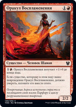 | Rules | : Incendiary Oracle gets +1/+0 until end of turn. If a creature dealt damage by Incendiary Oracle this turn would die, exile it instead. |