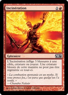 | Rules | Incinerate deals 3 damage to any target. A creature dealt damage this way can't be regenerated this turn. |
