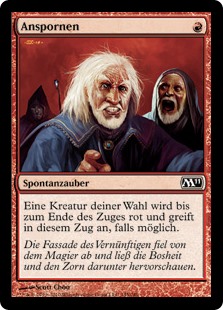 | Rules | Target creature becomes red until end of turn and attacks this turn if able. |