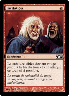 | Rules | Target creature becomes red until end of turn and attacks this turn if able. |