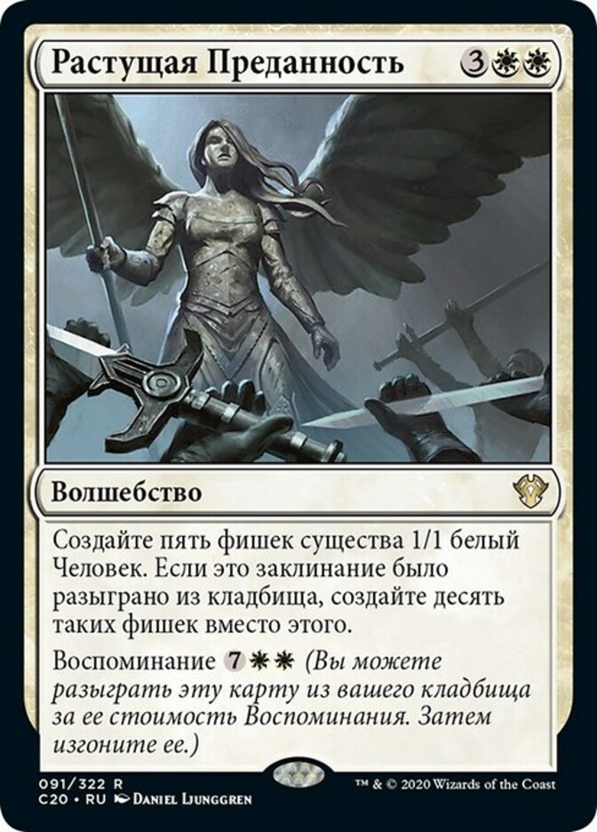 | Rules | Create five 1/1 white Human creature tokens. If this spell was cast from a graveyard, create ten of those tokens instead. Flashback (You may cast this card from your graveyard for its flashback cost. Then exile it.) |
