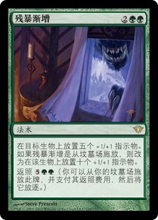 Rules Put five +1/+1 counters on target creature. If this spell was cast from a graveyard, put ten +1/+1 counters on that creature instead.