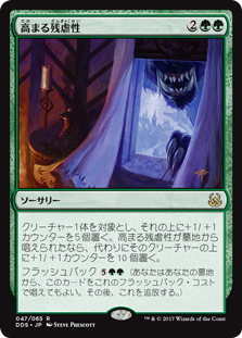 | Rules | Put five +1/+1 counters on target creature. If this spell was cast from a graveyard, put ten +1/+1 counters on that creature instead. Flashback (You may cast this card from your graveyard for its flashback cost. Then exile it.) |