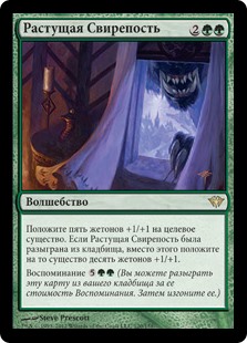 | Rules | Put five +1/+1 counters on target creature. If this spell was cast from a graveyard, put ten +1/+1 counters on that creature instead. Flashback (You may cast this card from your graveyard for its flashback cost. Then exile it.) |