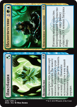 | Rules | Look at the top five cards of your library. You may reveal a creature card from among them and put it into your hand. Put the rest on the bottom of your library in a random order. // Exile target creature. That creature's controller creates a 3/3 green Frog Lizard creature token. |