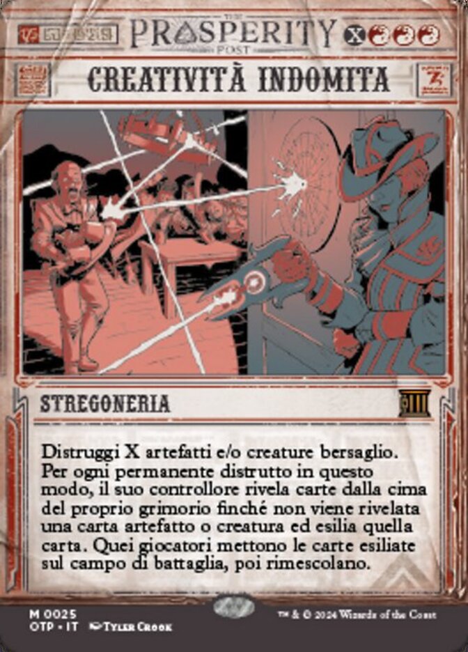 | Rules | Destroy X target artifacts and/or creatures. For each permanent destroyed this way, its controller reveals cards from the top of their library until an artifact or creature card is revealed and exiles that card. Those players put the exiled cards onto the battlefield, then shuffle. |