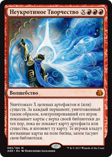 | Rules | Destroy X target artifacts and/or creatures. For each permanent destroyed this way, its controller reveals cards from the top of their library until an artifact or creature card is revealed and exiles that card. Those players put the exiled cards onto the battlefield, then shuffle. |