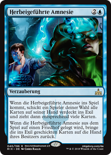 | Rules | When Induced Amnesia enters the battlefield, target player exiles all cards from their hand face down, then draws that many cards. When Induced Amnesia is put into a graveyard from the battlefield, return the exiled cards to their owner's hand. |