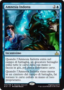 | Rules | When Induced Amnesia enters the battlefield, target player exiles all cards from their hand face down, then draws that many cards. When Induced Amnesia is put into a graveyard from the battlefield, return the exiled cards to their owner's hand. |