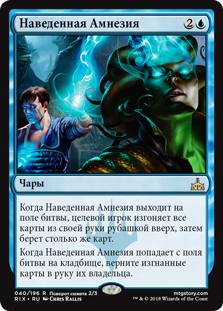 | Rules | When Induced Amnesia enters the battlefield, target player exiles all cards from their hand face down, then draws that many cards. When Induced Amnesia is put into a graveyard from the battlefield, return the exiled cards to their owner's hand. |