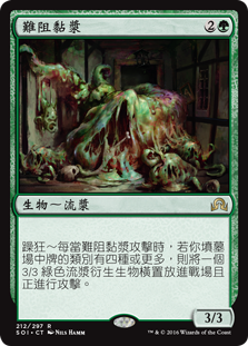 | Rules | Delirium — Whenever Inexorable Blob attacks, if there are four or more card types among cards in your graveyard, create a 3/3 green Ooze creature token that's tapped and attacking. |