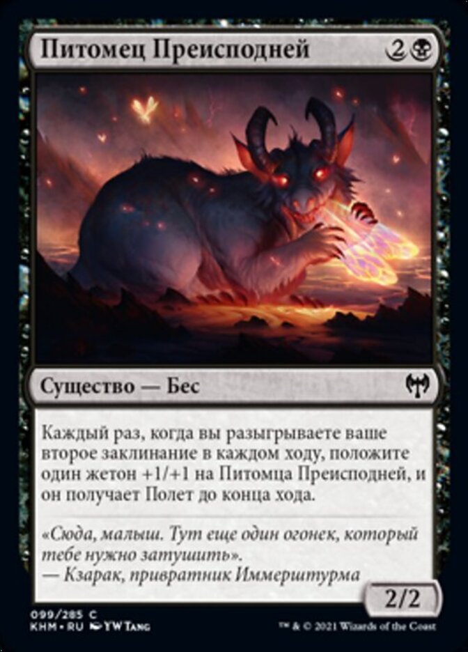 | Rules | Whenever you cast your second spell each turn, put a +1/+1 counter on Infernal Pet and it gains flying until end of turn. |