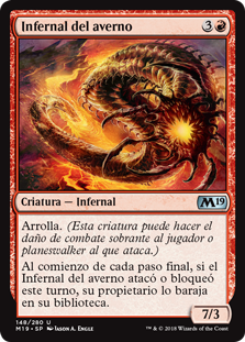 | Rules | Trample (This creature can deal excess combat damage to the player or planeswalker it's attacking.) At the beginning of each end step, if Inferno Hellion attacked or blocked this turn, its owner shuffles it into their library. |