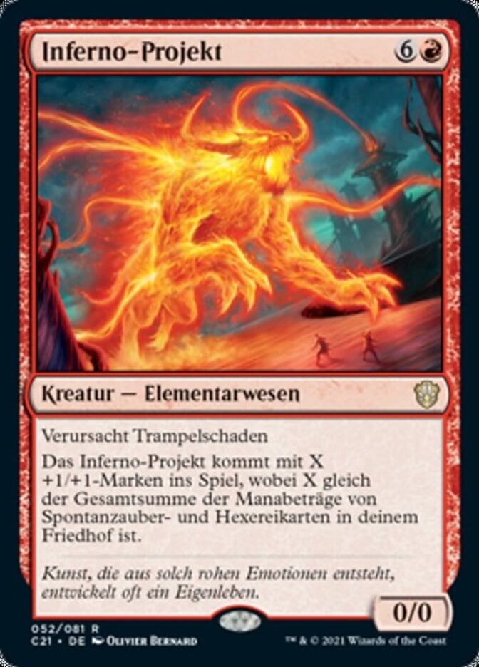 | Rules | Trample Inferno Project enters the battlefield with X +1/+1 counters on it, where X is the total mana value of instant and sorcery cards in your graveyard. |