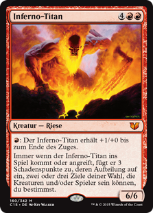 | Rules | : Inferno Titan gets +1/+0 until end of turn. Whenever Inferno Titan enters the battlefield or attacks, it deals 3 damage divided as you choose among one, two, or three targets. |