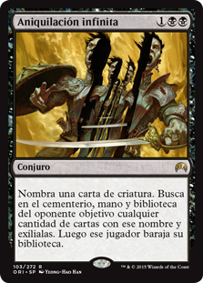 | Rules | Choose a creature card name. Search target opponent's graveyard, hand, and library for any number of cards with that name and exile them. Then that player shuffles. |