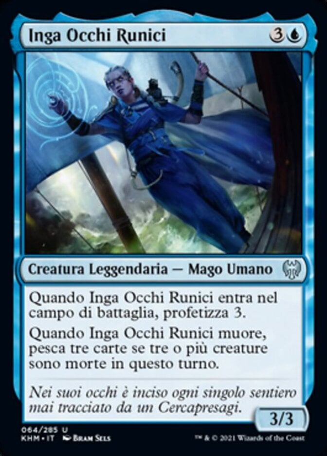 | Rules | When Inga Rune-Eyes enters the battlefield, scry 3. When Inga Rune-Eyes dies, draw three cards if three or more creatures died this turn. |