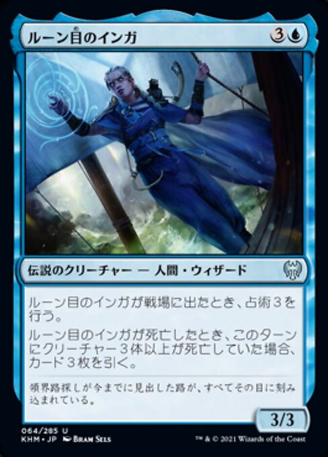 | Rules | When Inga Rune-Eyes enters the battlefield, scry 3. When Inga Rune-Eyes dies, draw three cards if three or more creatures died this turn. |