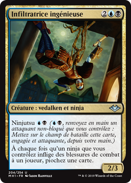 | Rules | Ninjutsu (, Return an unblocked attacker you control to hand: Put this card onto the battlefield from your hand tapped and attacking.) Whenever a Ninja you control deals combat damage to a player, draw a card. |