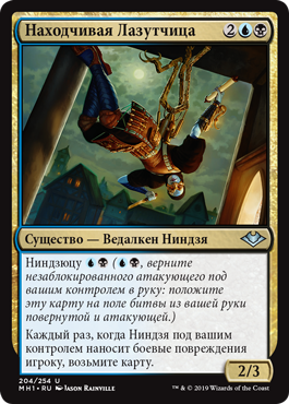 | Rules | Ninjutsu (, Return an unblocked attacker you control to hand: Put this card onto the battlefield from your hand tapped and attacking.) Whenever a Ninja you control deals combat damage to a player, draw a card. |