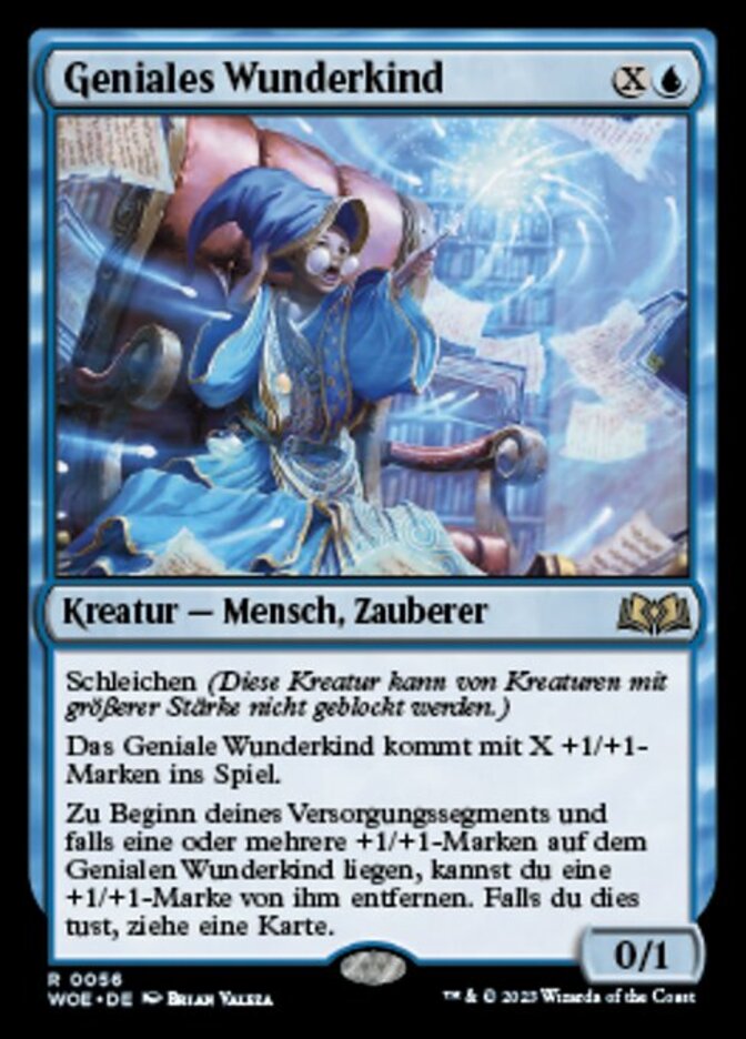 | Rules | Skulk (This creature can't be blocked by creatures with greater power.) Ingenious Prodigy enters the battlefield with X +1/+1 counters on it. At the beginning of your upkeep, if Ingenious Prodigy has one or more +1/+1 counters on it, you may remove a +1/+1 counter from it. If you do, draw a card. |