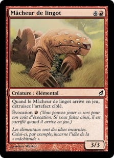 | Rules | When Ingot Chewer enters the battlefield, destroy target artifact. Evoke (You may cast this spell for its evoke cost. If you do, it's sacrificed when it enters the battlefield.) |