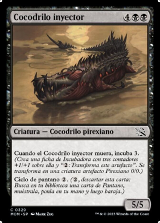 | Rules | When Injector Crocodile dies, incubate 3. (Create an Incubator token with three +1/+1 counters on it and ": Transform this artifact." It transforms into a 0/0 Phyrexian artifact creature.) Swampcycling (, Discard this card: Search your library for a Swamp card, reveal it, put it into your hand, then shuffle.) |