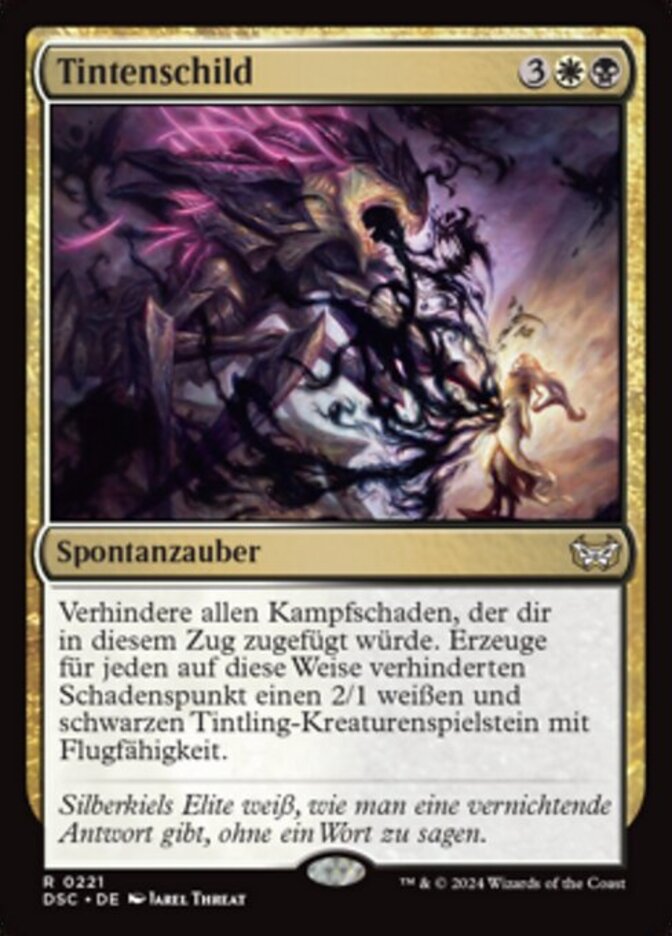 | Rules | Prevent all combat damage that would be dealt to you this turn. For each 1 damage prevented this way, create a 2/1 white and black Inkling creature token with flying. |